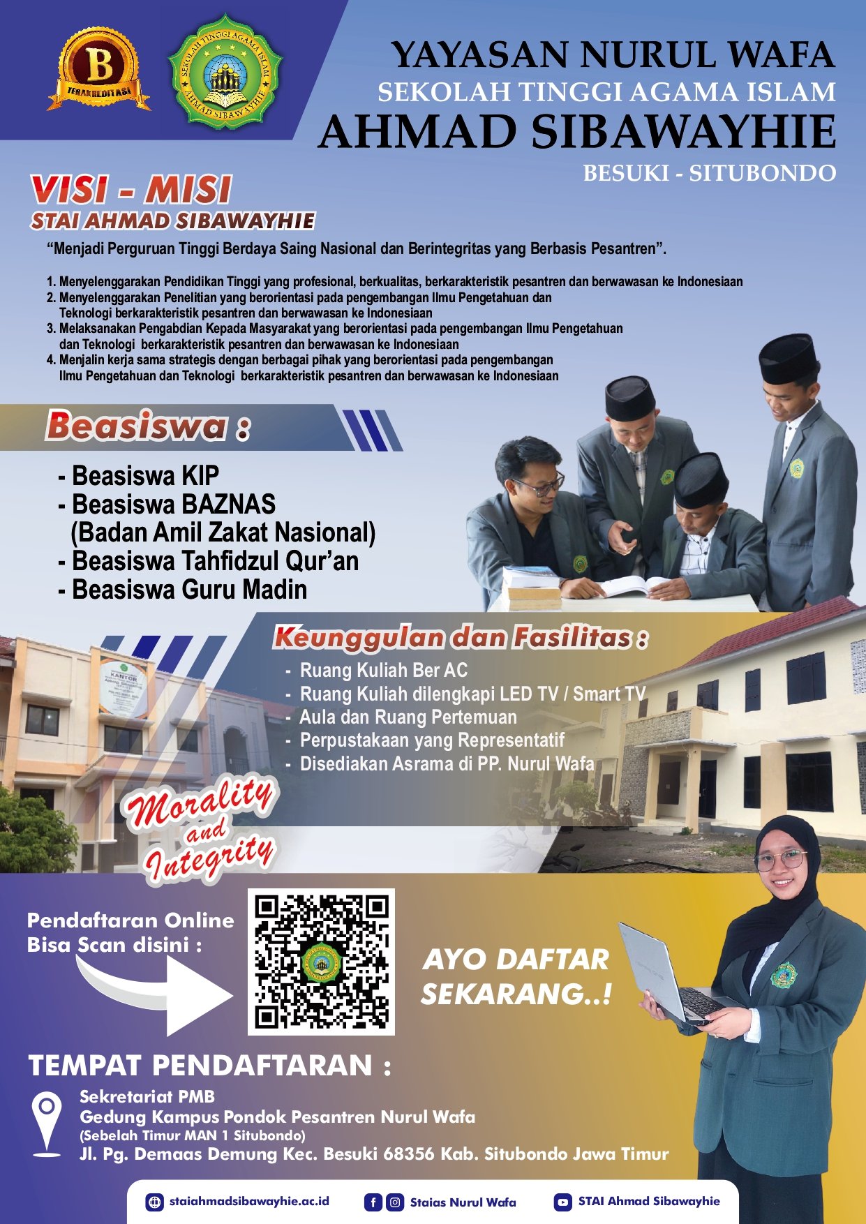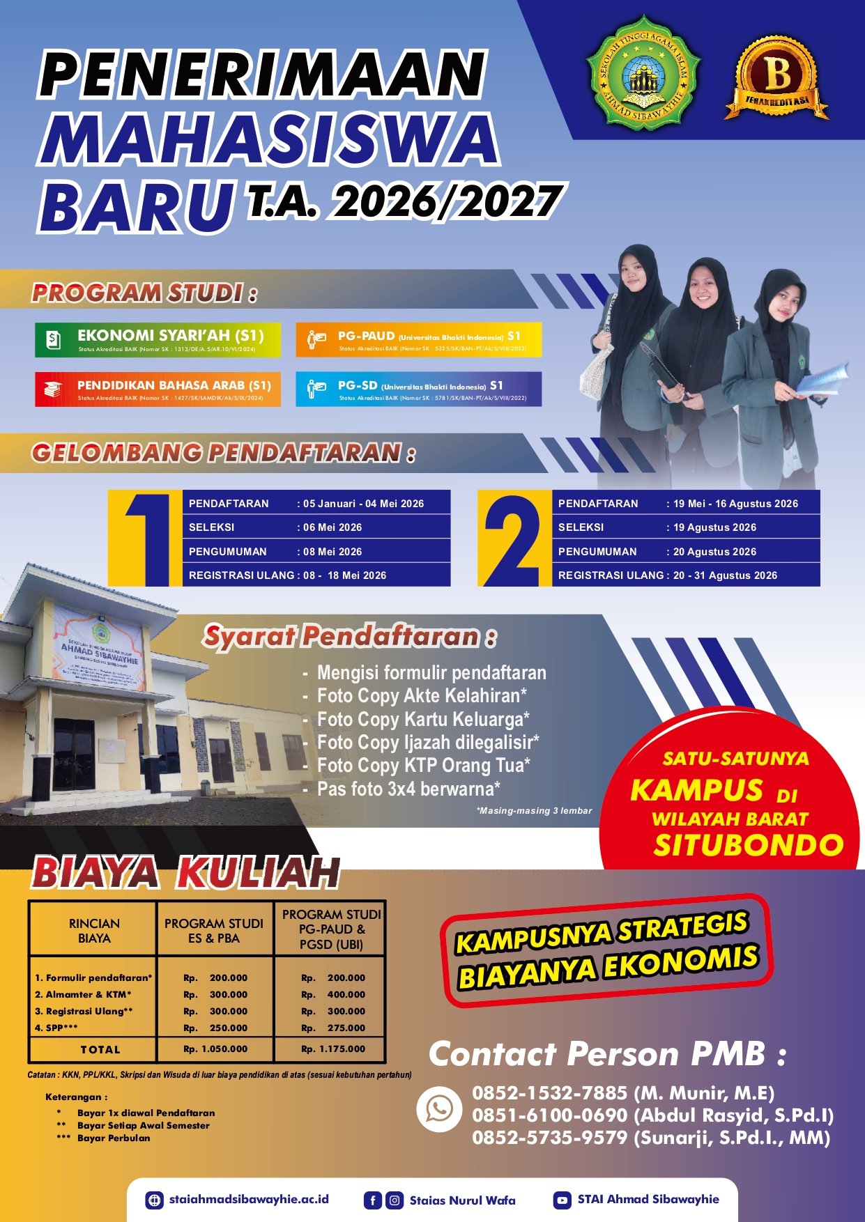 Sekolah Tinggi Agama Islam Ahmad Sibawayhie dibawah naungan PP Nurul Wafa Membuka Pendaftaran Penerimaan Mahasiswa Baru Tahun Akademik 2026/2027 melalui dibawah ini.